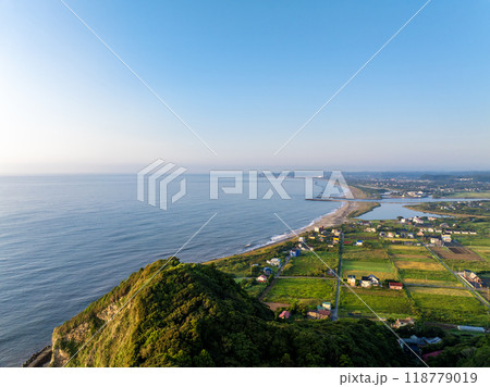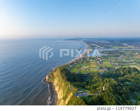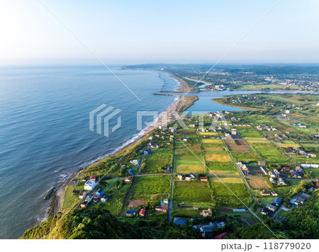 福岡市西区~佐賀県唐津の海岸空撮 福岡市西区今津大原海水浴場・毘沙門山