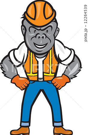 Angry Gorilla Construction Worker Cartoon