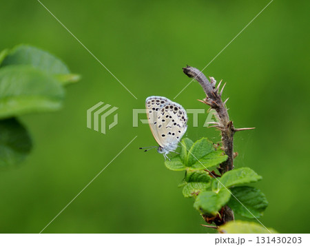 ヤハズソウの葉上で休む「ヤマトシジミ」