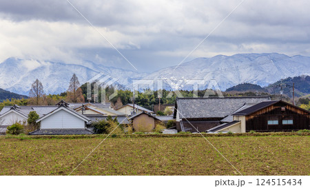 飛鳥駅から飛鳥宮跡へ パノラマ 明日香村役場から雪の金剛山と大和葛城山 2025年3月19日