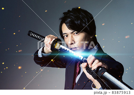 日本刀を抜く剣士のポートレート 武道 武士 サムライ