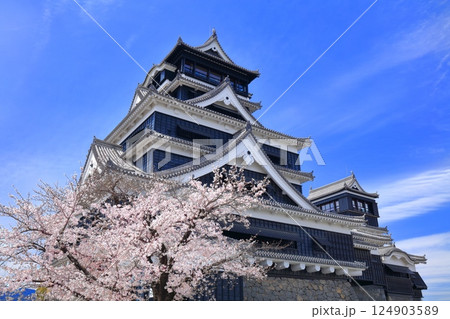 【熊本県】満開の桜と熊本城(大天守と小天守)