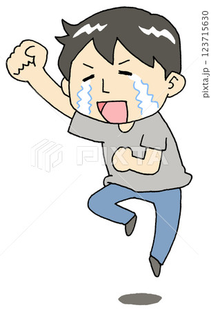 拳をあげてガッツポーズの若い男性のイラスト素材
