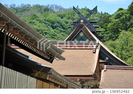 出雲大社 青空と拝殿の破風,鬼瓦