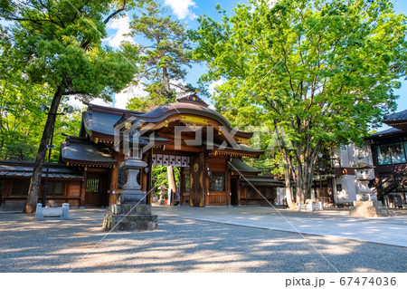 大國魂神社の本殿 春の青空 東京都府中市宮町