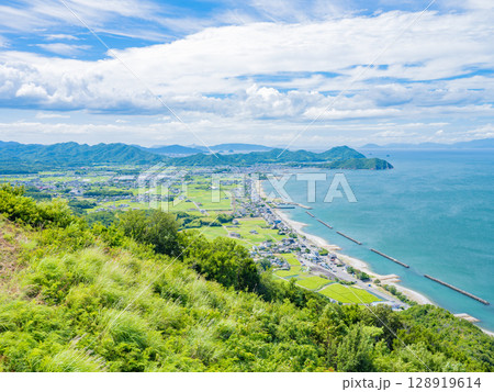 青空と瀬戸内海 香川県東かがわ市大坂峠展望台から北方向を撮影