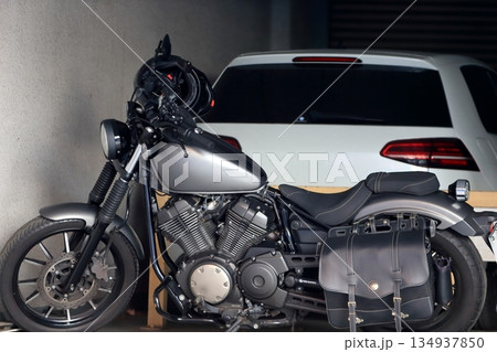 ガレージのオートバイ(アメリカンタイプ)
