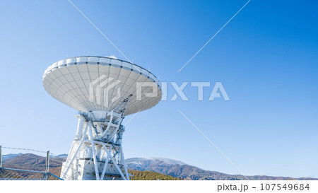 「長野県」快晴の青空に映える電波望遠鏡パラボラアンテナ