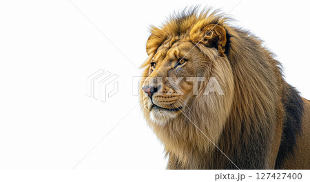 large majestic muscular male lion resting PNG transparent background isolated graphic resource