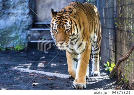 動物園の風景 歩き回るアムールトラ 北海道旭川市