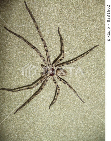 生き物 蜘蛛 アシダカグモ、オスです。平ための体形ですが徘徊性のクモで日本最大