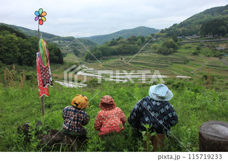 日本の岡山県美咲町の大垪和西の棚田の美しい風景
