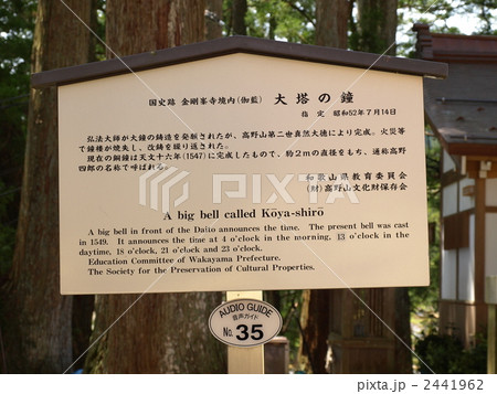 世界遺産「高野山金剛峯寺・大塔の鐘の案内板」