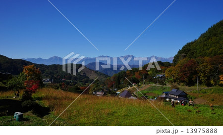 雪をいただく北アルプスを背に春の訪れを告げる花 福寿草