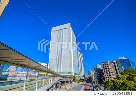 JR桜木町駅前 さくらみらい橋と横浜市庁舎のビルディング