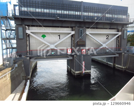 東京都江東区永代の大横河と隅田川を仕切る大島川水門