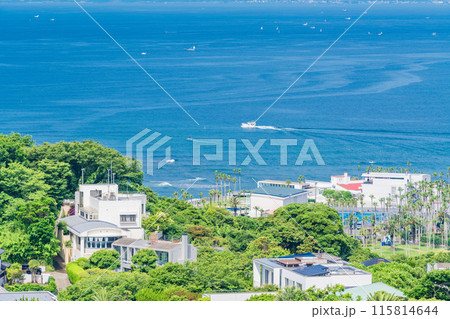 【神奈川県】湘南の住宅地越しに見る、江ノ島と富士山