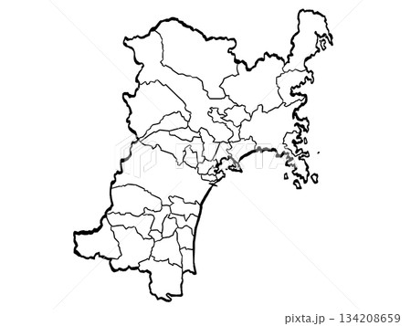 宮城県地図・市町村区分 (筆タッチ) シンプル