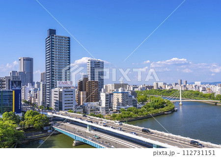 天満橋から大川の風景 夏 新緑の季節【大阪市 天満】