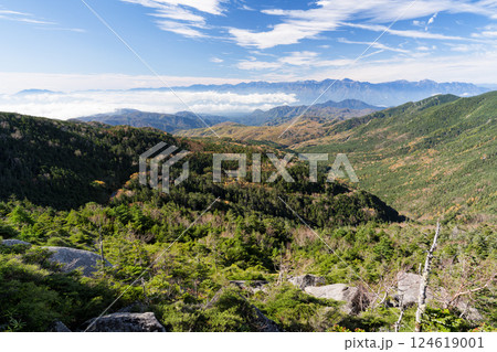 山梨(長野)の北奥千丈岳(きたおくせんじょうだけ)山頂から西側の金峰山方面