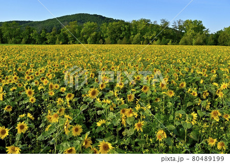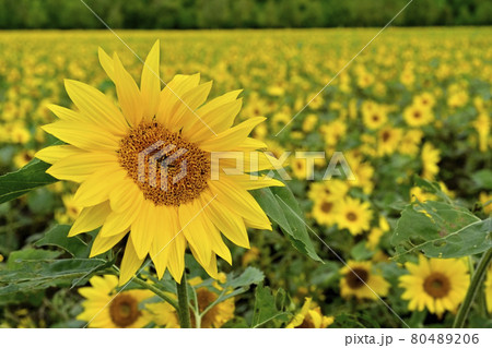 網走市網走湖大曲湖畔園地のヒマワリ畑