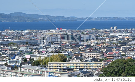 大村市(長崎県/新大村駅建設後) 遠景に針尾電波塔と西海橋(佐世保)