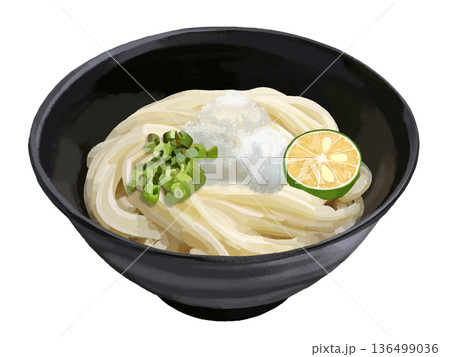 おろしぶっかけうどん(ネギ、大根おろし、カボス入り)