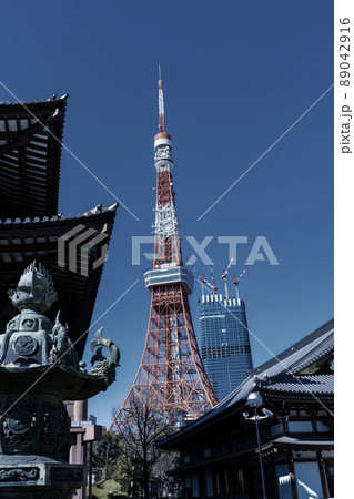東京都港区の増上寺(旧広書院)から眺めるオフィスビル