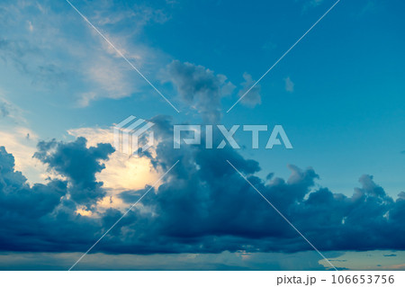 夏の青空に夕陽に染まる積乱雲 a-2 高彩度コントラスト