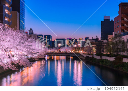東京リバーサイドのライトアップの夜桜 門前仲町