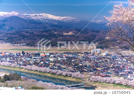 【宮城県_白石川堤一目千本桜と蔵王連峰】