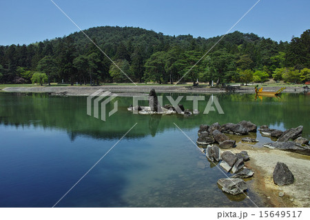 毛越寺の大泉ヶ池の出島石組と池中立石(岩手県西磐井郡平泉町)