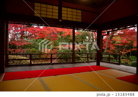和室から眺める紅葉の庭園 大法院