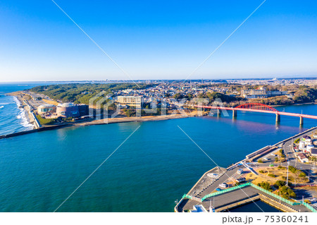 海門橋 かいもんばし 一級河川 那珂川 河口 快晴 建設 橋 茨城県 大洗町