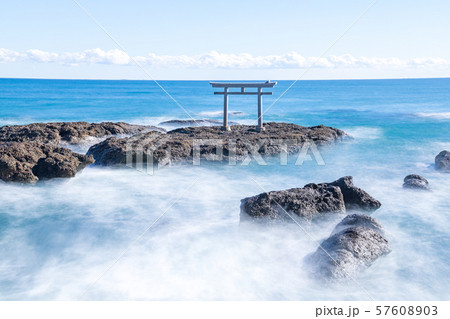 「茨城県」磯前神社の海の鳥居 大洗海岸