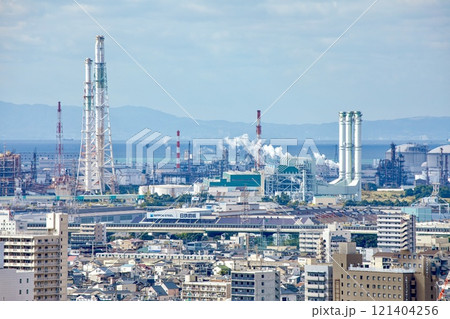 堺市、堺市役所展望ロビーからの眺め(堺泉北臨海工業地帯方面)