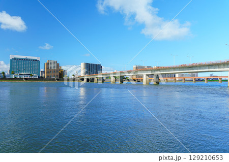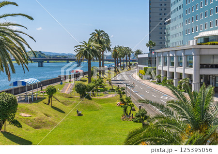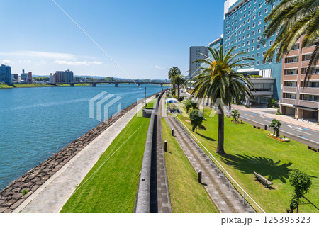 宮崎市大淀河畔の橘公園と大淀川 南国の風景が広がる都市景観