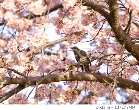 早咲きの大漁桜とヒヨドリ