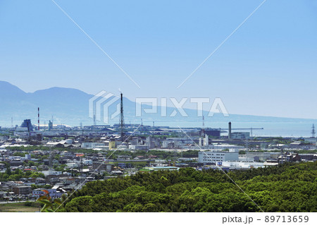夏8月大牟田市三池山から大牟田市街と工場地帯