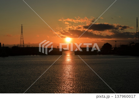 大牟田三池港光の航路の美しい夕日の景色