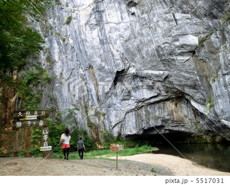 日本 岩手県一関市を流れる砂鉄川沿いの渓谷、猊鼻渓の大猊鼻岩