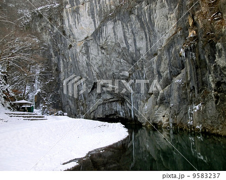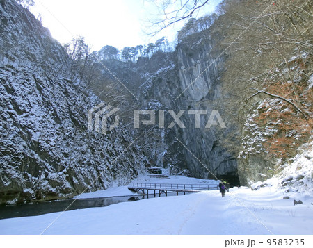 猊鼻渓(岩手県一関市)の断崖絶壁の写真