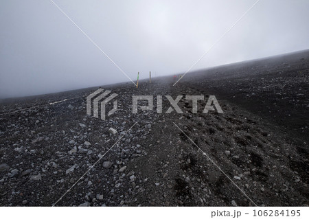 富士山御殿場登山道から見る大砂走りと雲湧く山腹