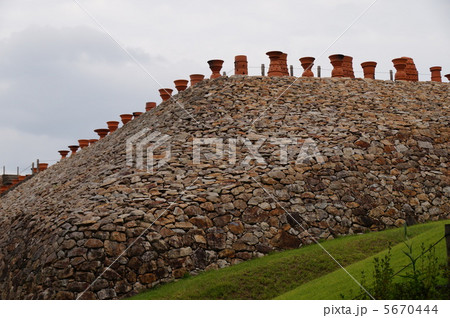 森将軍塚古墳の石積みと埴輪 復元された前方後円墳 千曲市 長野県