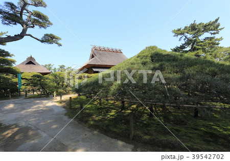 香川県丸亀市「中津万象園」大傘松と母屋、観潮楼