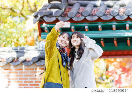 大阪鶴見緑地(大韓民国庭園)を観光する女性