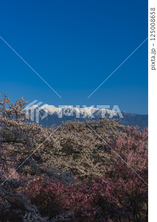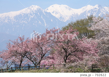 【桜素材】大草城址公園から見る桜と残雪の中央アルプス【長野県】