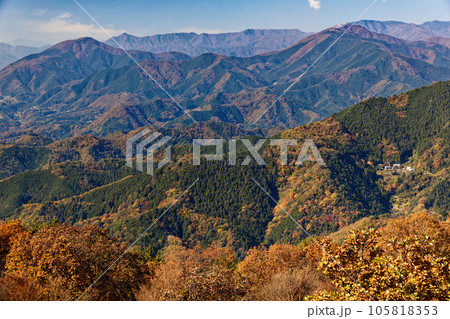 紅葉の陣馬山から見る扇山・権現山と南大菩薩