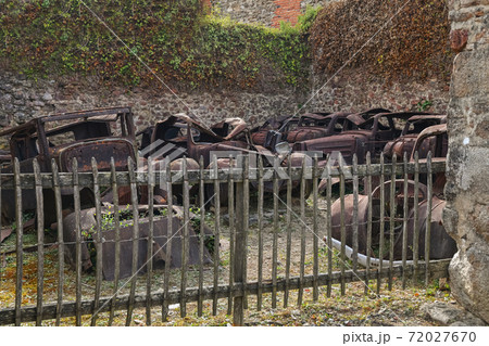 Destroyed cars during World War 2 in the city Oradour sur Glane France