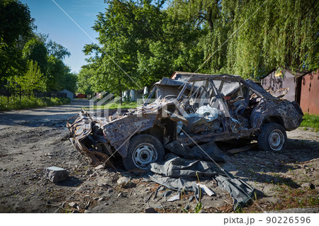 War-destroyed cars in Irpin, Bucha district, Ukraine
